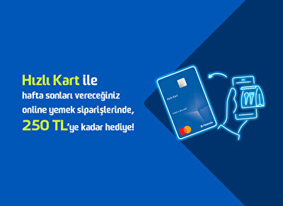 - Hızlı Kart ile hafta sonları yapılacak online yemek harcamaları için 250 TL'ye kadar geri ödeme yapılacaktır.