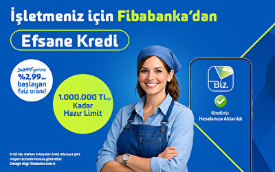 - İşletmenize özel nakit ihtiyaçlarınız için bankaya gitmeden, size özel ön onaylı limitinizi anında FibabankaBiz Mobil uygulaması veya web sitesi üzerinden öğrenebilir, Esnaf, KOBI ve ya münferit yetkili limited şirket iseniz dakikalar içerisinde görüntülü bankacılık ile Fibabanka müşterisi olup aylık %2,99’dan başlayan faiz oranları ile Fibabanka Efsane Kredi başvurusunda bulunabilir ve onaylanması halinde kredinizi anında hesabınıza aktarabilirsiniz.