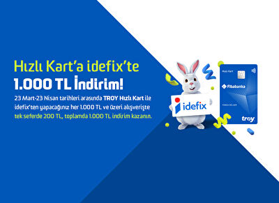 Kampanya döneminde, TROY logolu Hızlı kart ile İdefix’te tek seferde yapılacak 1.000 TL ve üzeri alışverişlerde 200 TL indirim sağlanacaktır.