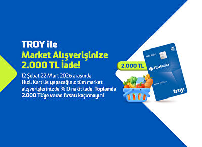 Kampanya, TROY logolu banka ve kredi kartı için geçerlidir.