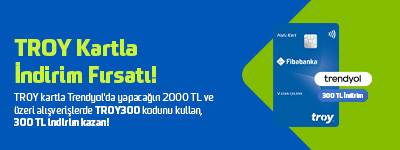 Kampanya, TROY logolu banka ve kredi kartı için geçerlidir.